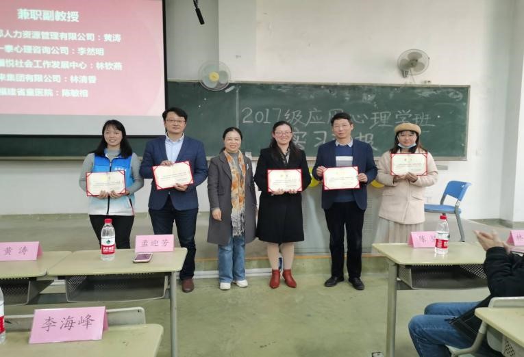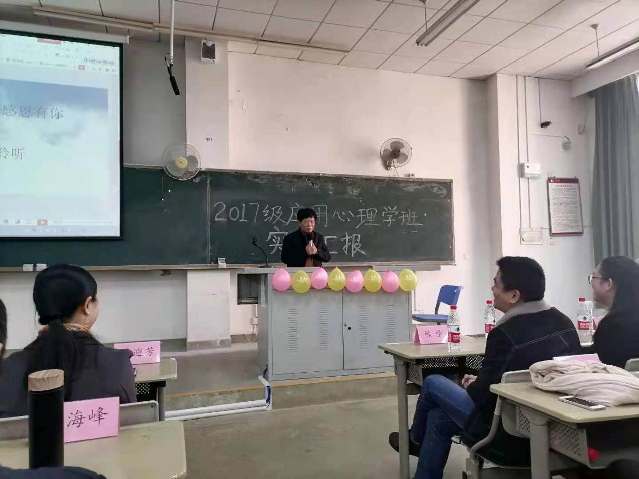 12月30日下午2点半,2017级应用心理学专业毕业实习汇报会在知明1-207教室举行。连榕院长、孟迎芳副院长以及校内实习指导老师和各个实习单位指导老师代表出席了本次会议,2017级、2018级应用心理学专业全体学生参会。