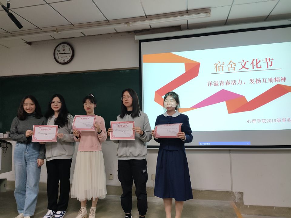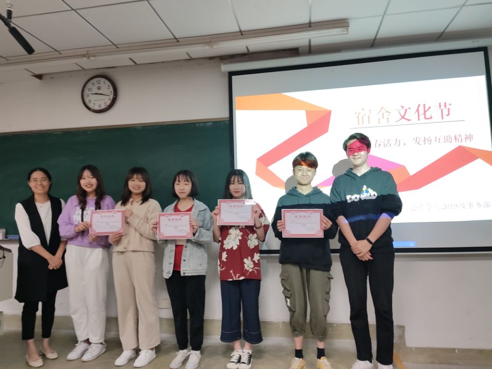 近期,我院正在举办以“喜迎建党百年,展现宿舍风采,洋溢青春活力”为主题的第二届宿舍文化节。2019级于4月18日晚18:30在笃行1-209教室进行才艺展示比赛。年级辅导员谢小芬老师、兼职辅导员黄晓冬老师以及五位学长学姐作为评委参加了本次活动。