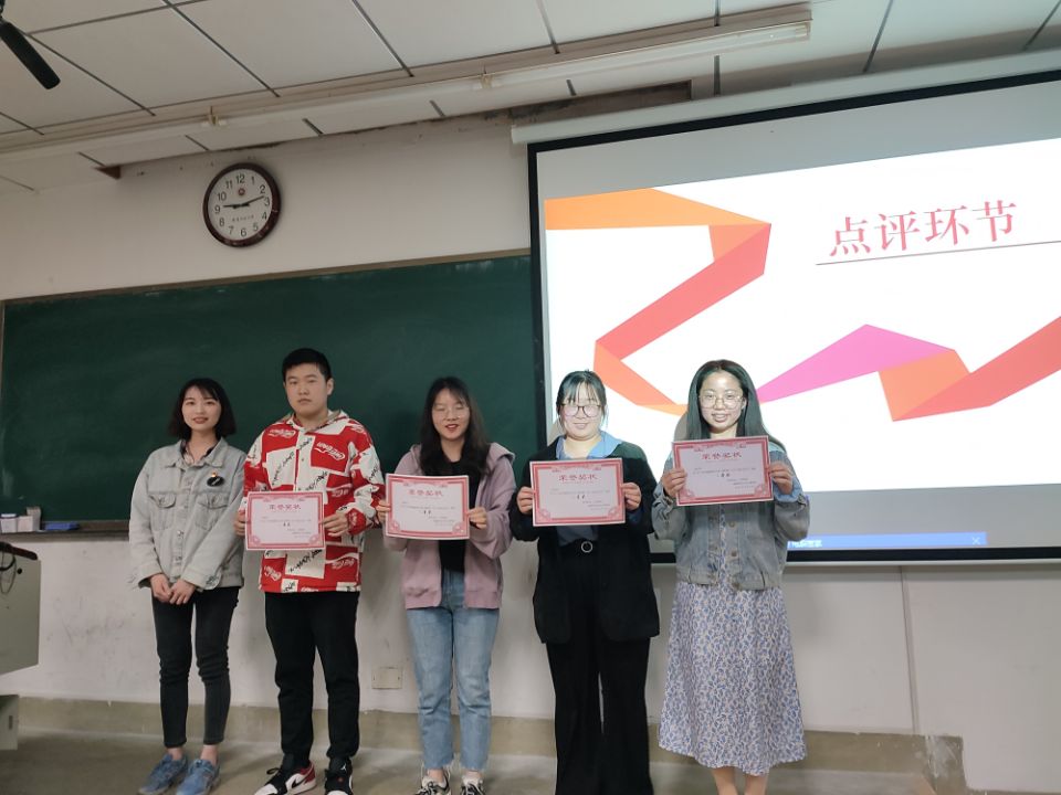 活动伊始,主持人黄小叶同学、贾程杰同学就本次才艺比赛流程进行简要介绍,主要包括表演和点评颁奖环节。在表演环节过程中,同学们花样百出:充满青春气息的歌曲合唱、活力四射的舞蹈、倍具感染力的小品、爱国主题的朗诵、一枝独秀的说唱等精彩节目为同学们呈现了丰盛的视听盛宴。台上同学尽心表演,台下同学热情应援,现场欢快而热烈,气氛空前高涨。年级全体同学表演结束后,2017级张媛婷学姐就同学们的演出进行点评,她表示自己曾多次参加2019级的活动,但从这次活动中真实的感受到了年级同学的成长。此外,辅导员黄晓冬也对同学们在短时间内排练出如此精彩的节目表示肯定,并鼓励年级同学在接下来的大学生活中能够多多参加活动,不断锻炼自己,提高自己。接着,便是活动的最后一个环节:激动人心的颁奖时刻。大部分节目都获得很不错的成绩,尤其是小品节目《家和万事兴》,在激烈的竞争中杀出重围,获得本年级的第一名。