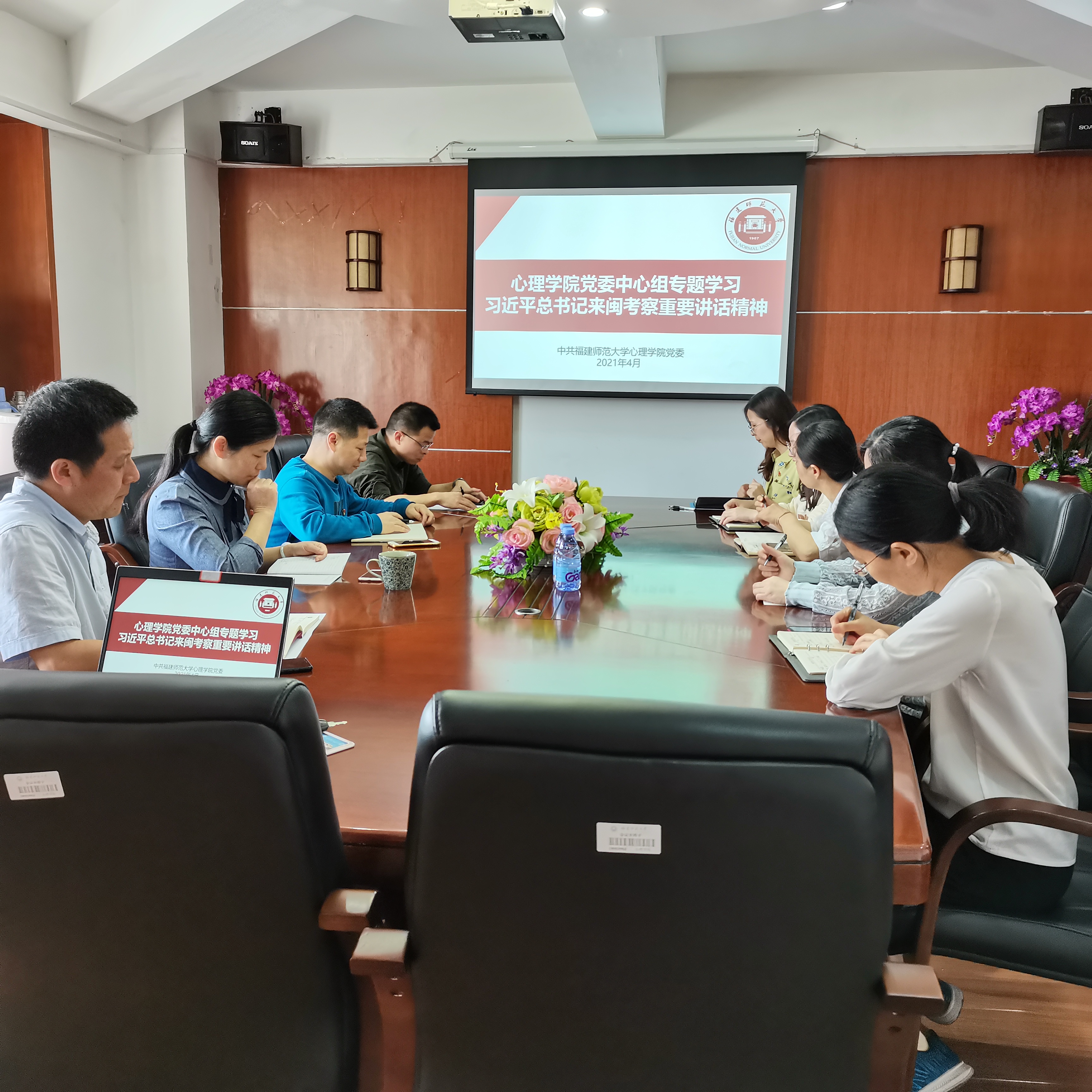 4月19日,心理学院党委中心组在学院会议室专题学习了习近平总书记来闽考察重要讲话精神。中心组全体成员参会。