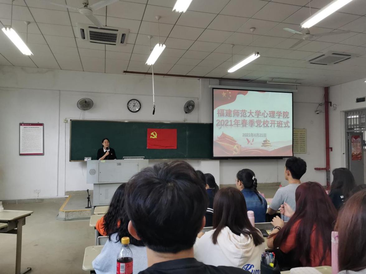 4月21日下午,我院2021年春季党校培训班开班式于立诚1-115顺利开展。心理学院党委张承东书记,党委办公室陈芳老师,本科生辅导员谢小芬老师和王丽君老师以及学院研究生和本科生各年级入党积极分子、发展对象、预备党员和党员一起参加了本次活动。