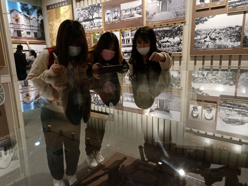 此次展览分为“探索救亡图存的道路”和“中国共产党成立”两大部分,共展出80余个版面、近200幅图片,以及各式各样的投影视频展和雕像,生动形象地展现了中国共产党救人民于水火并带领人民开辟一条条新道路的光辉历程。一本本发黄的烈士证、破损的党章无一不撞击着同学们的心灵。“让我印象最为深刻的是二楼展台,陈列了自1840年到1949年成立新中国以来,福建人民的英勇斗争与巨大牺牲,令我震撼,崇敬之感油然而生,而他们的年纪大多与我们大学生一般,处于二十岁左右的,本应是花样年华,却牺牲在了革命的历史长河中。是他们的牺牲,铸就了我们现在的安然时光。”徐菲凡同学如是感慨。