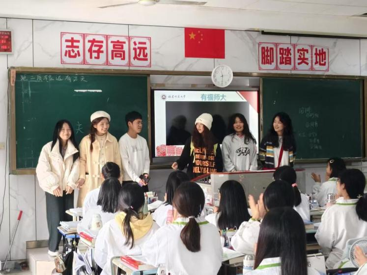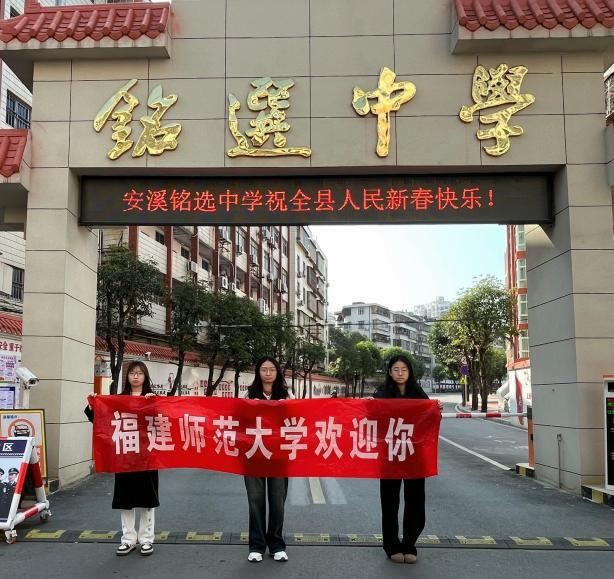 1月22日,我院“福星传铭”实践队走进了福建省安溪县铭选中学,这支由心理学院的李佳雯、社会历史学院的陈思莹、黄巧玲三名优秀学生组成的实践队,带着对母校的深情与对福建师范大学的热爱,踏上了一段传递梦想与希望的旅程。“福星传铭”实践队,寓意着将福建师范大学的星光传递给铭选中学的学子们。实践队精心准备了宣传视频、招生简章、校园风光照片等丰富多彩的宣传材料,通过生动的讲解和真实的分享,向学弟学妹们展示了福建师范大学的校园环境、教学设施、学术氛围以及丰富多彩的校园活动。宣讲过程中,队员们结合自己的亲身经历,讲述了在福建师范大学的学习和生活感受,让宣讲内容更加贴近学生实际,引起了强烈的共鸣。宣讲活动取得了显著的成效。许多学生表示,通过此次宣讲,他们对福建师范大学有了更加全面和深入的了解,对校园环境、学术氛围和就业前景心生向往。