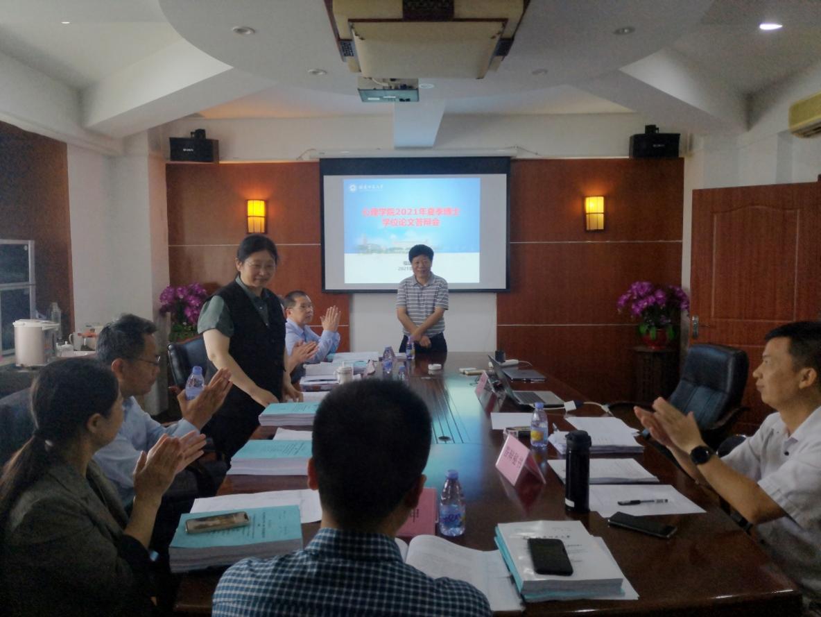 6月5日,我院进行2021年夏季博士论文答辩。长江学者、中国心理学会副理事长、华东师范大学博导郭秀艳教授,中国心理学会常务理事、湖南师范大学研究生院院长彭运石教授以及国家百千万人才工程人选、福州大学工商管理研究院院长王益文教授前来主持答辩。王凯旋、林斐、洪幼娟、张文龙、陈浩五位博士研究生报告了自己的毕业论文并对专家的问题做出了较好的回答。答辩委员会一致认为五位博士研究生的论文达到博士学位要求,可以授予博士学位。
