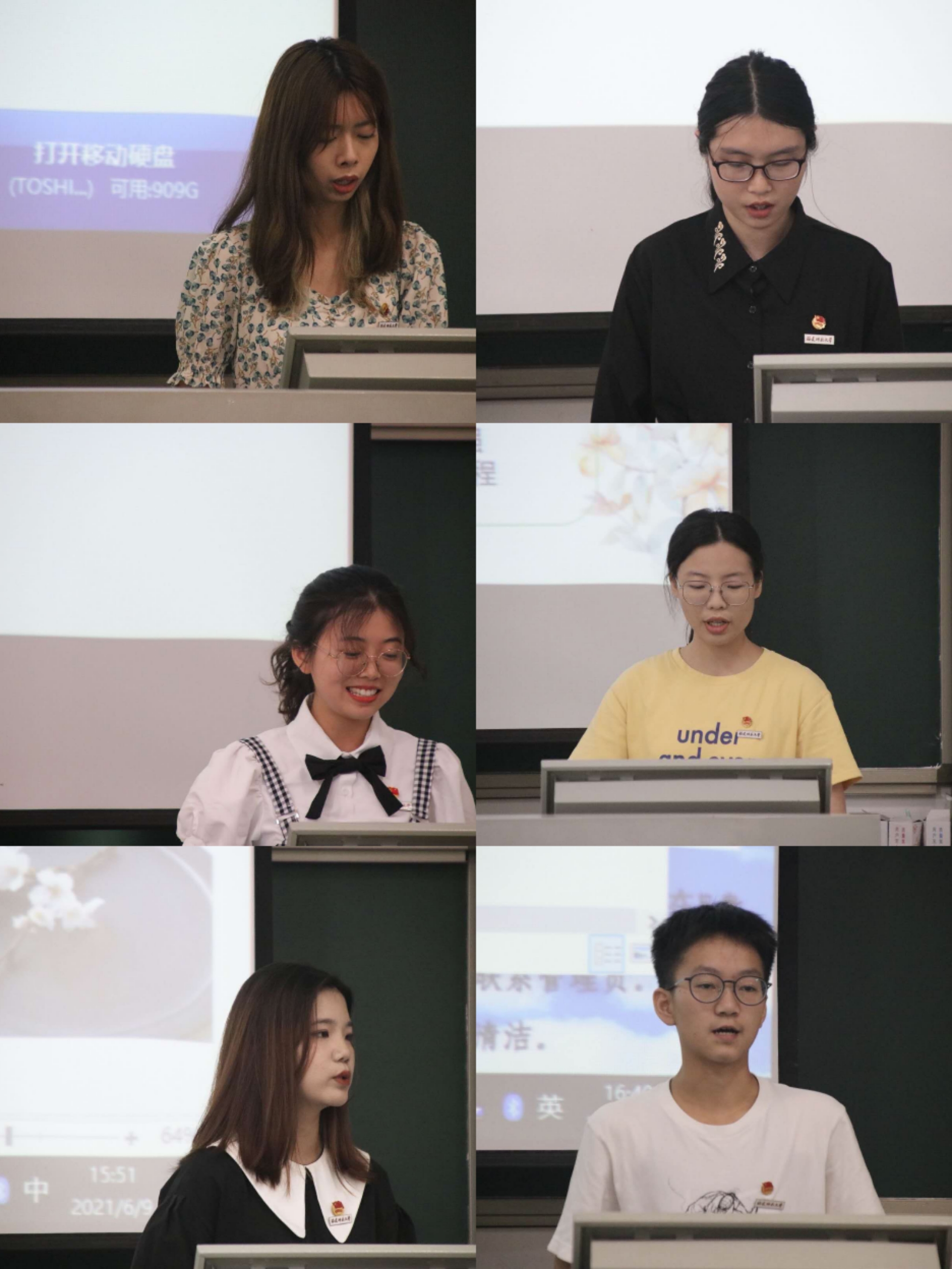 本次竞聘活动分三个教室同步进行,每一位候选人的竞选演讲均包括个人展示和现场答辩两个环节。在个人展示环节,各位候选人采用演讲和PPT相结合的方式,简要地介绍了个人基本情况和学生工作经历,并根据自己对学生工作的理解提出了工作设想和工作创新。而在答辩阶段,候选人则结合自身思考,认真回答评委们的问题。