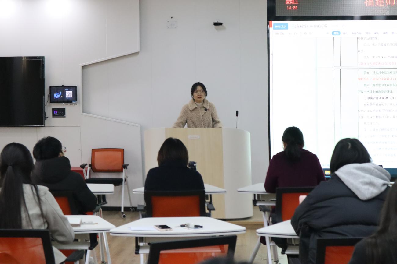 实习带队教师相晓庆就实习具体安排和要求作了详细说明,重点解读了实习手册和实习计划。同学们围绕实习安排、教学实践、考核评价等方面踊跃提问,老师们给予了细致解答。