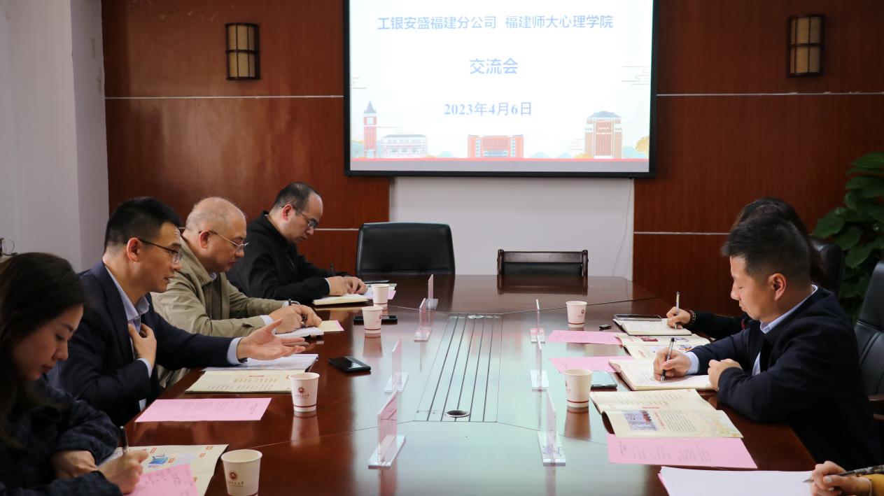 会上,张玉峰总经理介绍了工银安盛福建分公司心理服务项目相关业务并提出未来展望。张本钰副书记介绍了我院历史发展、机构设置、师资队伍、人才培养、社会服务等基本情况。双方围绕中小学生心理健康服务和长期合作模式进行了深入交流。