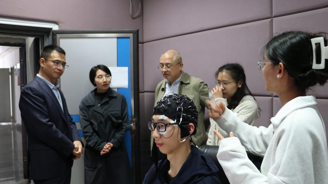 会后,张玉峰总经理一行到我院实验中心参观了虚拟仿真实验室、认知神经科学实验室、团体心理辅导室、眼动分析实验室和ERP实验室,并合影留念。
