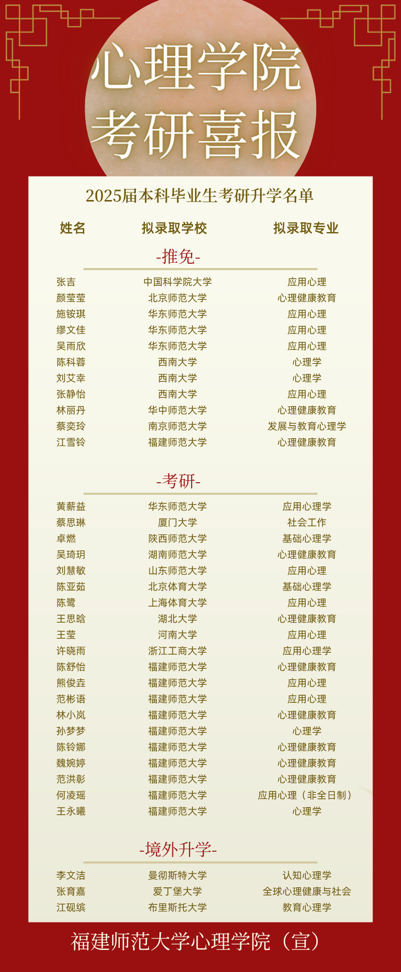砥砺耕耘结硕果,弦歌不辍传佳音。在全院师生的共同努力下,我院2025届毕业生在升学深造中再创辉煌,捷报频传!本科毕业生中,3名同学获取曼彻斯特大学、爱丁堡大学、布里斯托大学高校留学资格。11名同学以优异成绩成功推免至中国科学院大学、北京师范大学、华东师范大学、西南大学等高校,20名同学通过全国统考,成功考入华东师范大学、厦门大学、陕西师范大学、湖南师范大学等高校。