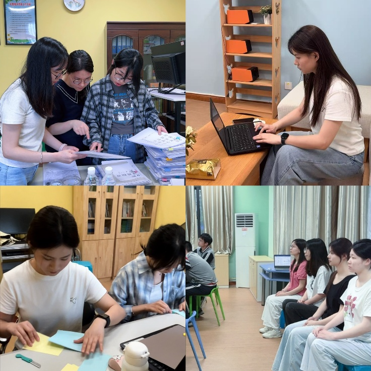 咨询室里,队员们就像一个个贴心的“心灵守护者”。面对或是迷茫、或是焦虑的学生,他们总能耐心倾听,用专业知识为孩子们打开一扇通往阳光的窗。在这里,每一次真诚的对话,每一次温暖的拥抱,都是实习队员们与学生情感交织的见证。除了日常的心理辅导支持,队员们还积极协助整理学生的心理档案,参与“一生一档”材料的整理与归类,从学生成长记录到心理测评资料,逐项梳理、细致归整,为后续的个性化支持提供基础保障。他们用实际行动诠释着“助人自助”的理念,也收获了学生们发自内心的感激与信任。