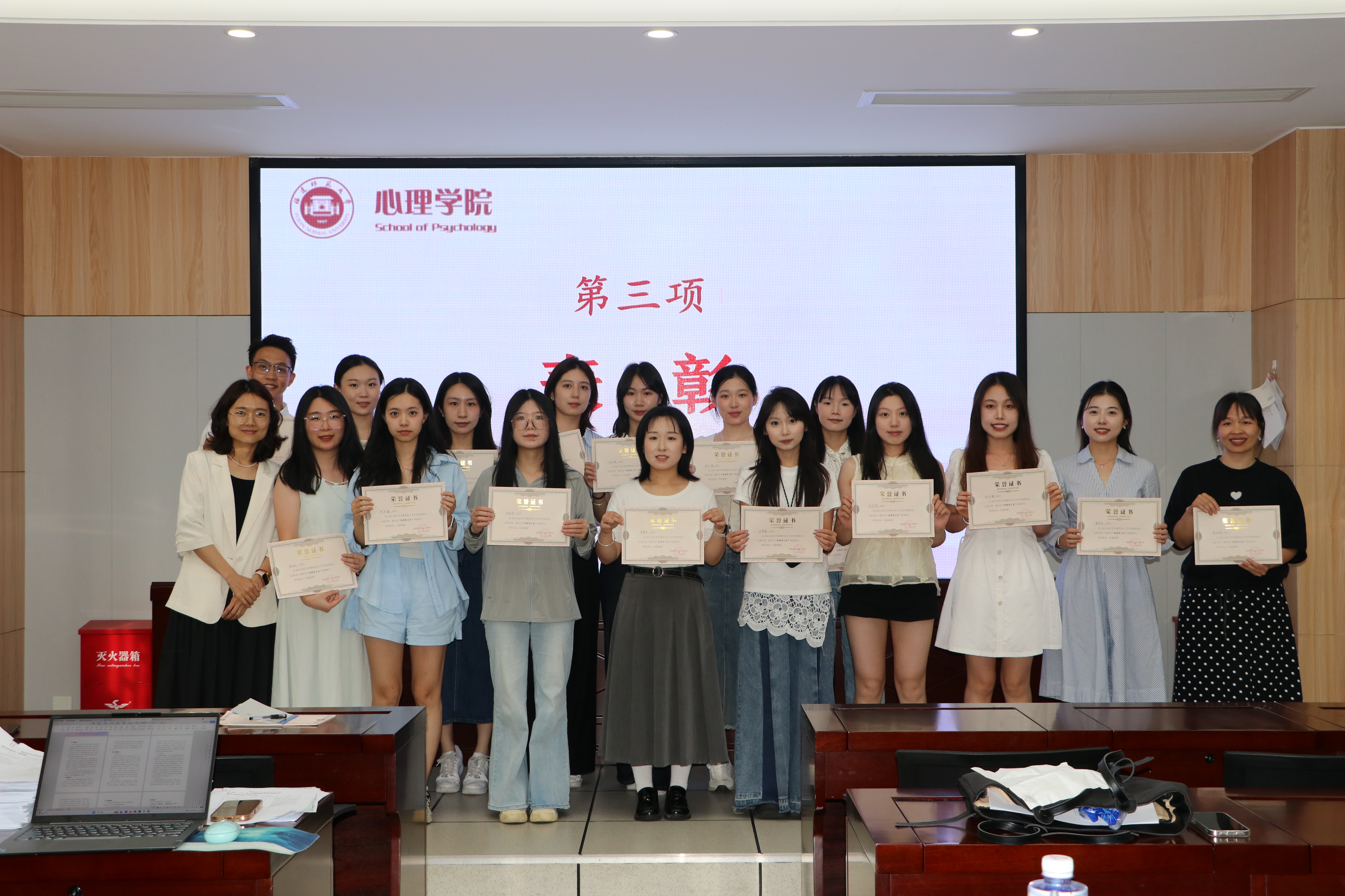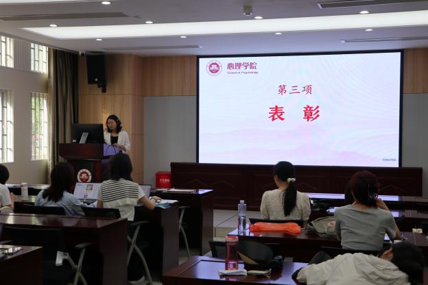 同学们在实习阶段所取得快速成长,离不开自身的勤奋努力,更凝聚着学院带队老师们的悉心指导。为肯定成绩、树立榜样,大会举行了表彰仪式,相晓庆老师宣读了心理学院优秀实习生名单,相晓庆老师与杨丽娴老师共同为获奖同学颁奖。林荣茂副院长宣读了心理学院优秀实习指导老师名单并为获奖老师颁奖。