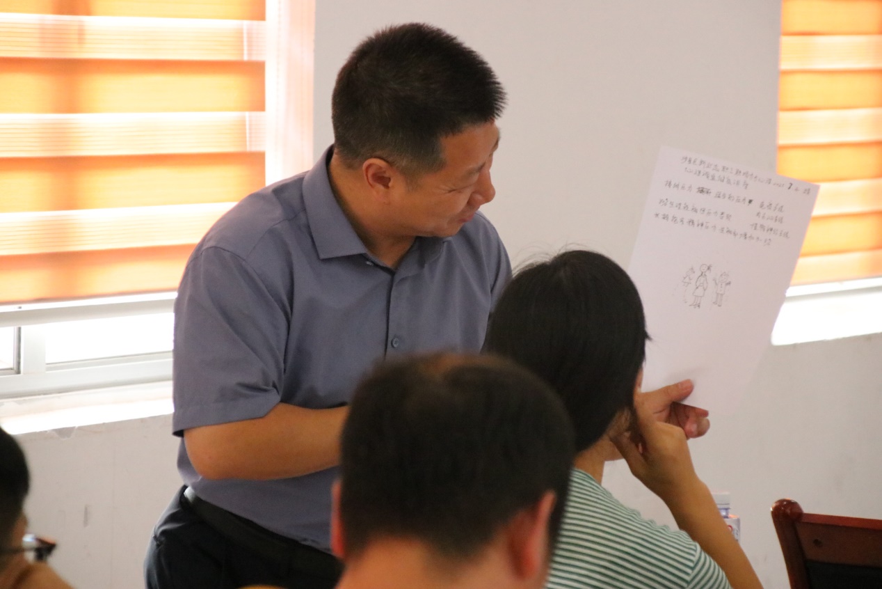 参观学习结束后,实践队随即开展团体心理辅导活动。以“逢7必过”破冰游戏开场,通过趣味报数与即兴夸赞,迅速打破职工间陌生感,营造轻松氛围。在“我的心事我敢说”环节,职工们在A4纸上匿名写下近期心理困扰并分组分享,有效疏解情绪压力;“挑战心魔我能行”环节中,借助九宫格学案纸引导职工梳理问题、探寻解决方案,实现自我赋能。活动尾声的“送你一朵小红花”环节,职工互赠祝福,进一步强化积极心理暗示。