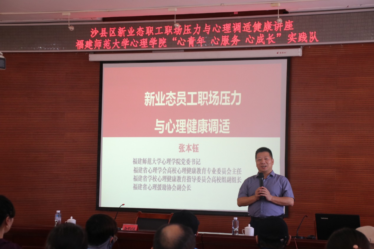 4日下午,我院党委书记张本钰带领实践队前往沙县区总工会,为新业态职工群体带来了一场聚焦职场压力与心理健康的专题讲座。讲座现场气氛活跃,张书记通过生动的讲解和互动,引导职工们科学认识压力,并传递了积极应对、调适心态的实用理念与技巧,助力职工们提升心理韧性与幸福感。