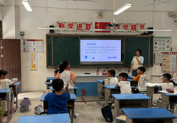 在蓬莱镇蓬莱中心学校,林雅婷、郑莉媛开展了暑期实践活动。队员们以心理科普课、心理健康课及非遗手工体验为主题,为孩子们带来“视错觉的奥秘”“发现身边的小幸福”、油纸伞绘制、茉莉花手串、京剧变脸等趣味课程;课堂之外,趣味运动会与文艺汇演热闹上演,小鸡舞的欢快旋律、各类趣味项目与孩子们的笑颜交织,“心灵画卷”将活动推向高潮。在蝉鸣与欢笑中,支教团队用知识播种希望、用陪伴温暖童心,也在责任与纯真的交汇中收获成长,让这个夏天成为彼此生命中闪亮的注脚。