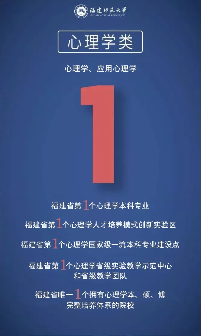 本专业立足福建,面向全国,培养师德高尚,专业基础扎实,心理育人能力强,具有反思能力、创新精神及终身发展意识,能在基础教育领域从事心理健康教育教学、心理辅导与咨询等工作的骨干教师。同时该专业也为心理学科以及其他相关学科输送高质量的研究生生源。