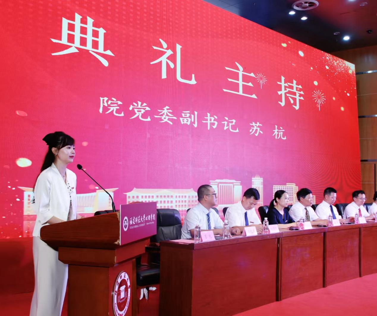 教师代表孟现鑫老师在发言中对新生送上真诚祝愿,期许同学们在未来的学习生活中,既能秉持进取精神,在专业领域不断探索前行;又能保持积极心境,从容应对成长中的困惑。