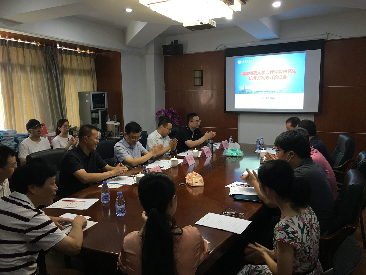 7月4日上午我院召开研究生培养方案修订专家论证会,邀请参会的论证专家有:天津师范大学研究生院副院长杨海波教授,贵州师范大学心理学院院长潘运教授,河北师范大学教育学院副院长贾宁教授,内蒙古师范大学心理学院副院长侯友教授;我校研究生院李巨轸副院长、培养科黄剑老师及我院培养方案修订工作小组成员参加了会议。连榕院长主持了会议,张锦坤老师介绍了培养方案修订背景和指导原则,而后分别就心理学学术学位研究生培养方案、应用心理专业学位研究生培养方案、教育硕士心理健康教育领域研究生培养方案的各环节进行了详尽地讨论。与会专家和领导充分肯定培养方案的合理性和科学性,并提出了建设性的修改意见和建议。在后续工作中,各培养方案负责人将针对专家提出的论证意见对培养方案进行修改和完善。