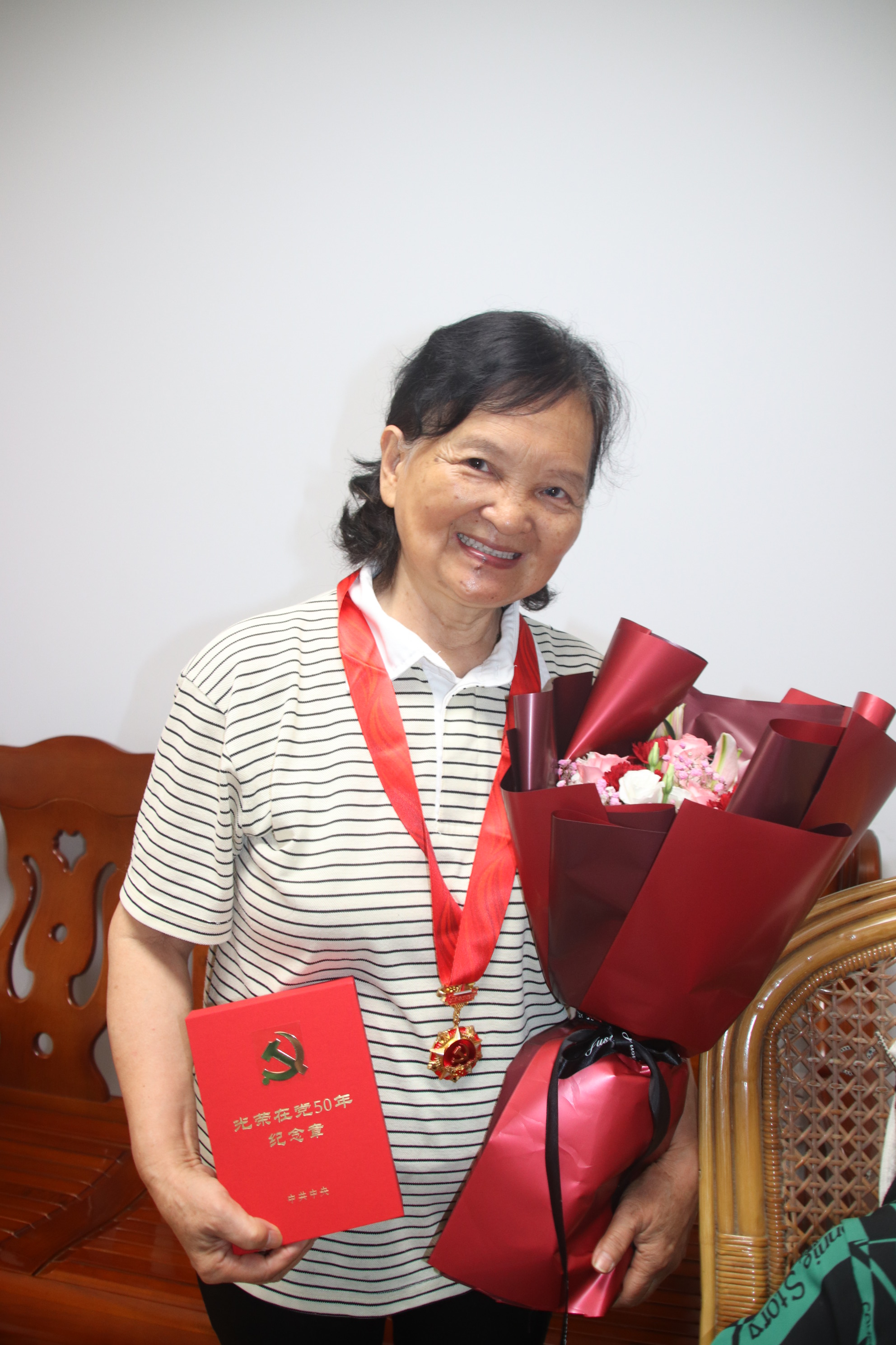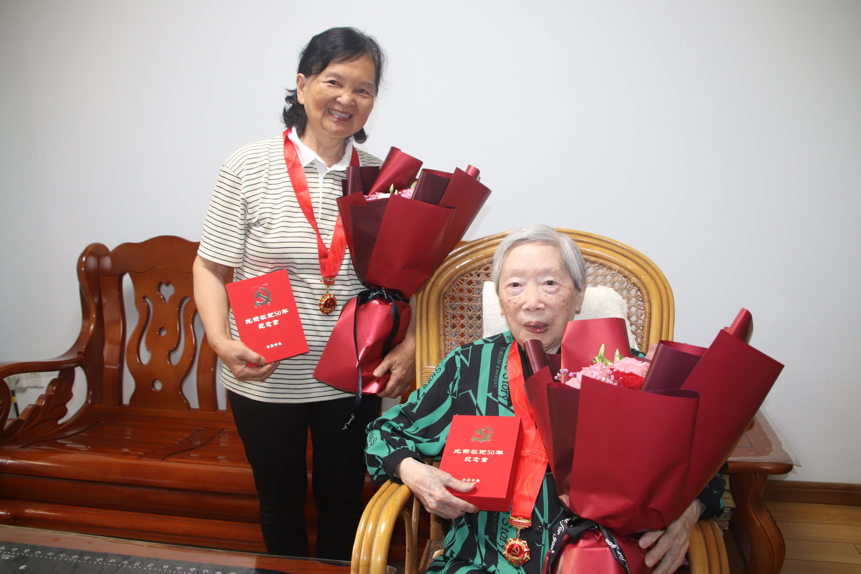 老党员对这次纪念章颁发很感动,她们表示将永不忘入党誓词,初心永葆!