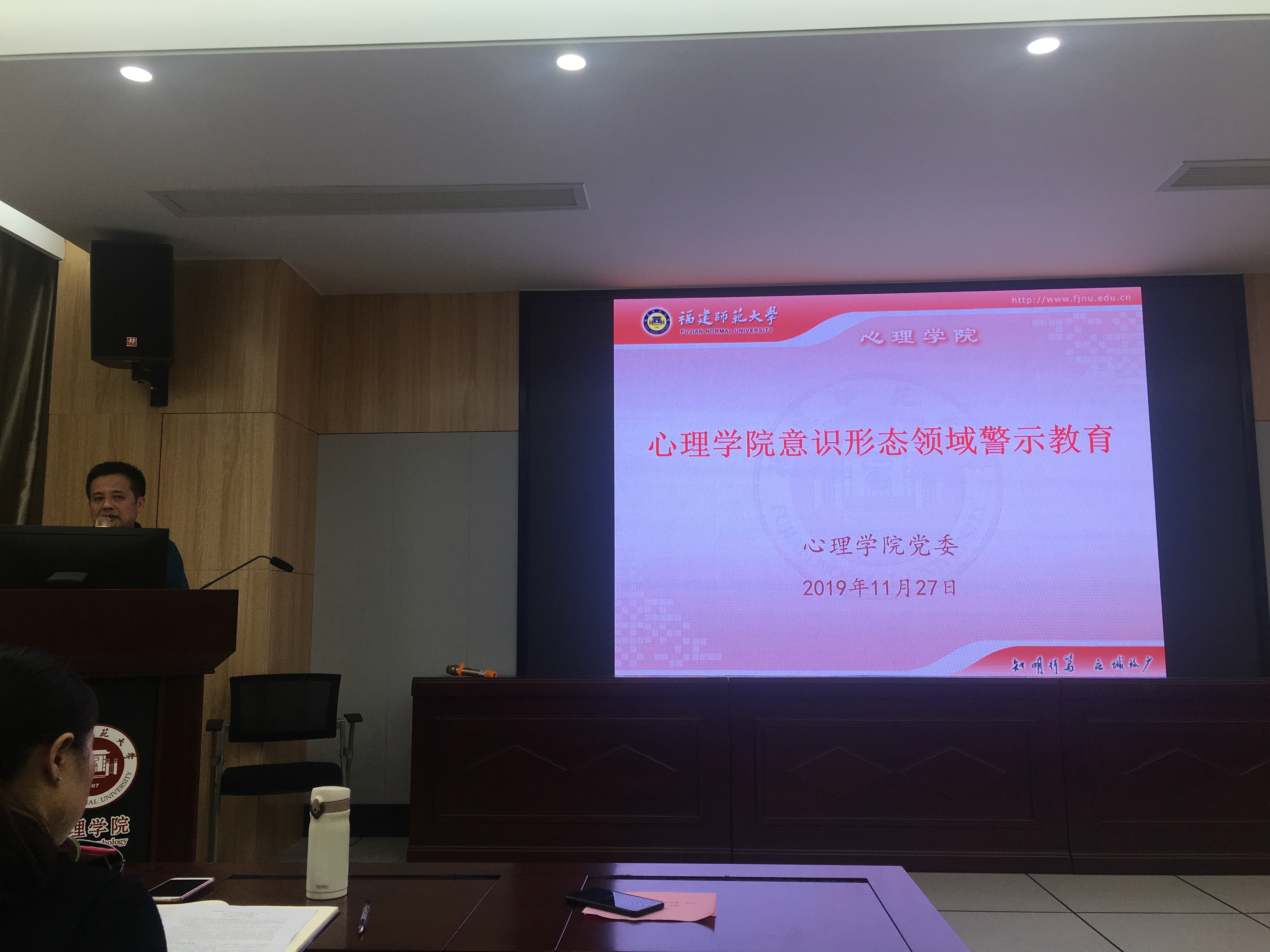 11月27日,心理学院意识形态领域警示教育活动在人文楼1-102开展。全院教职工参加了教育活动。活动由学院党委张承东书记主持。