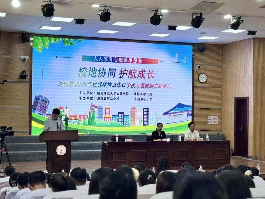 10月11-12日,由福建师范大学心理学院与浦城县教育局联合主办的 2025 年世界精神卫生日学校心理健康系列活动在浦城县第二中学举行。浦城县教育局副局长张京力,福建师范大学心理学院孟迎芳院长、林荣茂副院长、杨丽娴副教授、陈坚副教授、张俐娟老师,及福建省心理学科教学带头人、浦城县 200 余位中小学班主任、心理教师共同参与。