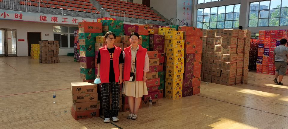 雨露同学的母校扶沟县高中以及扶沟县力神机械有限公司作为救灾物资中转中心,物资流量大、任务重、志愿者需求量大。积极报名成为一名救灾物资志愿者,为安置群众清扫垃圾、打包早餐、帮助物资搬运和流通志愿服务活动,得到扶沟县居民的高度认同。