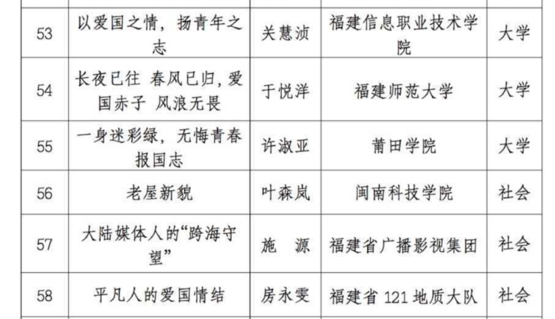 据悉,本次征文活动共收到投稿近3万篇,经“学习强国”福建学习平台、福建教育杂志社两家承办单位联合初审,共选出1957篇征文在“学习强国”福建学习平台刊发。同时,在初审选出的1957篇稿件基础上,主承办单位组织专家评审团队,本着公平、公正的原则,经过严格的初评、复评以及现场评审,评选出获奖作品280篇,其中一等奖20篇,二等奖40篇,三等奖80篇,优秀奖140篇。