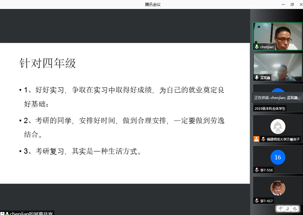 随后,应用心理学系主任陈坚、心理学系主任孟现鑫分别针对各个年级的同学们提出了新学年学习方法的指导意见,特别指出同学们在新学期要认真学好专业课知识,夯实专业基础,增强与专业教师的沟通,调适好心理状态,以积极向上的心态迎接新学期,获得新收获,展现新风采。