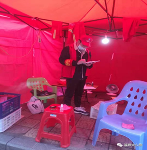 在一下午不辞辛劳的重复着同样的工作中,内心难免开始有些疲惫,但叶同学心想:我不过在此地待了几个小时,而在医院一线与病魔抗斗的医生连续好几个晚上都没睡好觉。想到此,他的内心有股说不清的暖流与冲劲,笑着对保安大叔说“没事,我可以”,坚持到了最后一刻,成功与下一批志愿者交接。