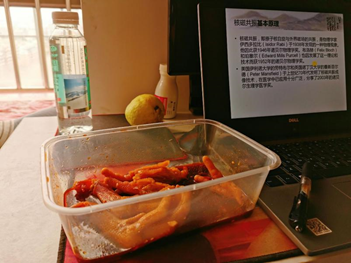 自从开始了网课的学习,生活就成了桌上放着一台笔记本电脑,旁边摆着笔记本和笔,再在另一旁摆上准备好的零食,课间休息的时候还能随时享受美食,好不惬意。这真的是以前想都不敢想的事。