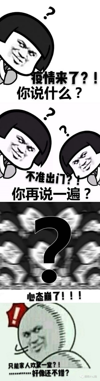屏幕前的你,是不是难于疲惫焦虑的状态?处于打坐修仙的静态?苦于日益丰盈的体态?愁于崩溃边缘的心态?临于喘不上气的病态?濒于精神恍惚的变态?疫情当下,你是否也遇过以下情形:家中亲人轻视病毒“无畏无惧”;网络好友心理崩溃求助无门;兄弟姐妹打坐修仙快乐肥宅;年迈老人信息落后轻信谣言;社会大众忽视心理濒于崩溃……