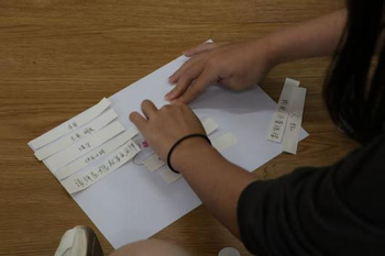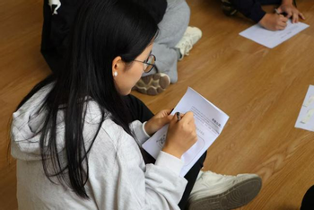 伴着舒缓音乐,同学们写下成长中的负面话语并撕掉,再通过小组讨论用积极语言替代负面标签,帮助同学们摆脱不合理评价的束缚,卸下心理负担,学会以包容心态看待自己。