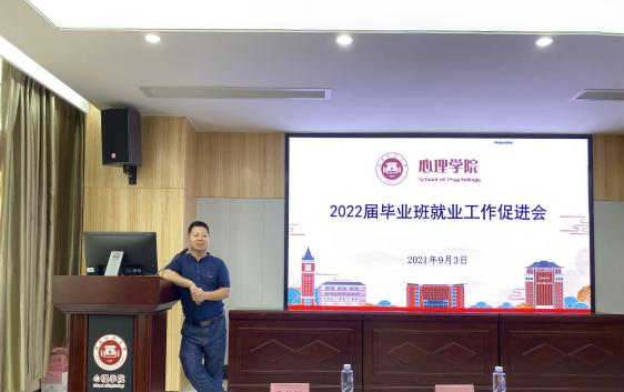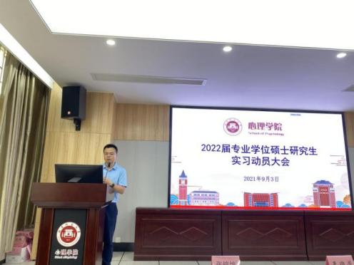 为更好引导学生做好专业实习前各项准备活动,推动2020级专硕实习工作的顺利开展,促进2022届毕业生的就业进度,2021年9月3日下午,我院在人文楼1-102召开了2022届毕业班就业工作促进会及2020级专业学位硕士研究生实习动员大会。动员大会由张锦坤副院长主持,张本钰副书记(主持工作)、应用心理专业学位点负责人孟迎芳副院长和心理健康教育专业学位点负责人林荣茂老师均莅临出席。