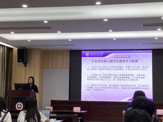 紧接着,针对2020级专业学位硕士研究生的实习目的与要求,张锦坤老师与应用心理专业学位点负责人孟迎芳老师、以及心理健康教育专业学位点负责人林荣茂老师都进行了详细的解读与指导。张锦坤老师强调实习的目的是培育德才兼备的高层次人才,提高专业硕士的培养质量,希望同学们可以认识到实习的重要性,在实习中充分锻炼自己,提升自己的专业技能。应用心理专业学位点负责人孟迎芳老师希望同学们可以学以致用,将所学的知识运用到实践活动中去。心理健康教育专业学位点负责人林荣茂老师以自己的实习经历为例,与大家分享了自己实习的感受,并在实习工作具体事项方面对同学们作指导,三位导师的发言言真意切,提出了许多建设性的建议,并积极鼓励全体学生以良好的状态参与实习。争取收获满满。在场的同学们认真聆听,受益良多。最后,兼职辅导员任佳锃老师就实习注意事项进行了强调,希望外出实习的同学务必自觉遵守相关规定,尤其是在疫情防控要求,要注意自身安全,做好个人防护。