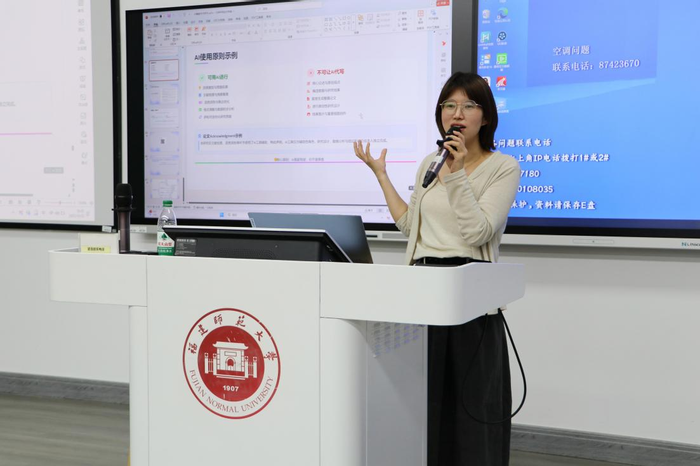 在人工智能技术迅猛发展的背景下,如何借助AI工具推动学术研究创新成为学界关注焦点。纪丽燕老师以自身研究为例,分享了AI技术在语言认知领域的应用实践,详细讲解了AI如何辅助实验设计、数据分析和文献梳理。她也提醒师生需恪守学术伦理:“AI是科研的‘副驾驶’,而非‘替代者’。” 直接提交AI生成内容可能涉及学术不端,研究者应在语言润色、思路拓展等辅助环节合理使用技术,确保核心观点与实验设计的原创性。