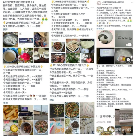 疫情在前,使命在肩,抗击疫情,人人有责,为此,2016级心理学班全体同学围绕这次疫情抗击开展了打卡活动。