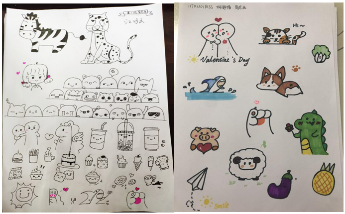 全体帮帮团成员积极参与此次活动,成员们满怀激情,用心书写一笔一划,尽其所能地展示自身书画的才能,创作出一幅幅生动形象、色彩绚丽的简笔画和书法作品,题材丰富多样,作品中无不透着或规范、或严谨、或灵动的气质,充分展示了成员们的书画才华。
