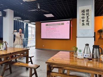 随后,支部成员与餐厅义工围坐一堂,共同研读《弟子规》经典篇章,义工阿姨结合自身多年服务经历,向我们阐释“孝悌”并非空洞口号,而是蕴含在递水、搀扶等细微之处。同时,同学们还系统学习了呈碗、迎宾、送宾等礼仪,每一个礼仪细节都彰显着对长辈的敬重之情。