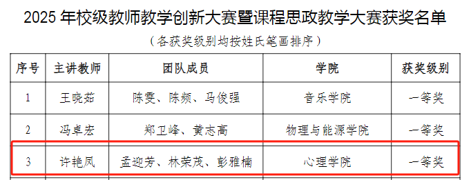 年校级教师教学创新大赛暨课程思政教学大赛获奖名单的通知》,经专家网络评审、现场评审等环节,教务处审核通过,最终评出获奖教师一等奖