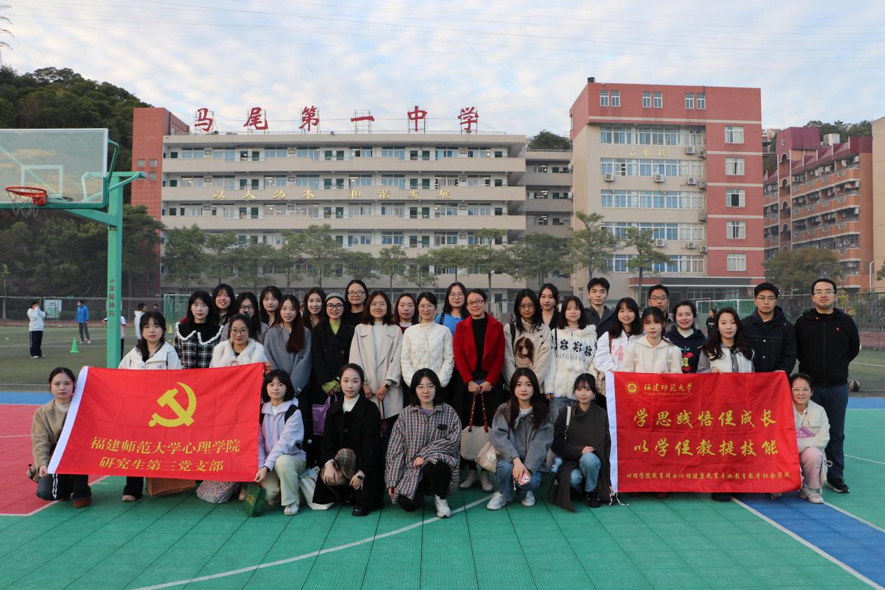 为切实推动心理健康教育专业理论与实践深度融合,提升教育硕士的课堂教学实战能力与专业核心素养,12月23日,我院白利莉副教授及相晓庆老师带队组织2024级教育硕士(心理健康教育专业)学子,由相晓庆老师及白利莉副教授带队,前往赴福州市马尾区马尾第一中学开展了一场以“青春寻我,共赴心程”为主题的教育教学社会实践活动。