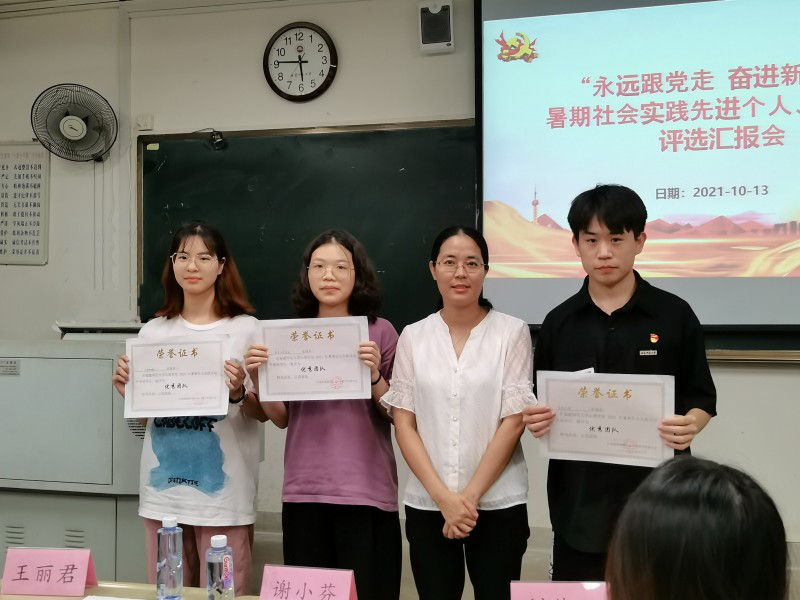 为深入学习习近平总书记“七一”重要讲话精神,进一步总结社会实践成果、扩大实践活动影响,表彰我院学生在2021年暑期社会实践中的优秀事迹,我院团委实践部于10月13日下午16时在立诚1-307教室举办了以“永远跟党走,奋进新时代”为主题的暑期社会实践优秀团队、先进个人评选汇报会。我院团委书记、2019及2021级辅导员谢小芬老师、2018及2020级辅导员王丽君老师以及2018级辅导员刘佳丽老师受邀作为此次汇报会的评委。