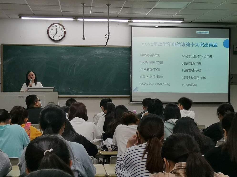 在大数据时代,网络空间中的电信诈骗方式层出不穷。在本次主题教育中,王丽君老师为同学们列举讲解了电信诈骗十大突出类型,也再次提醒同学们要提高警惕,牢记网络安全行为口诀,并落实到生活实际中,遇到网络诈骗,莫慌乱、莫轻信、莫点击、莫透露,保护好个人信息隐私安全。