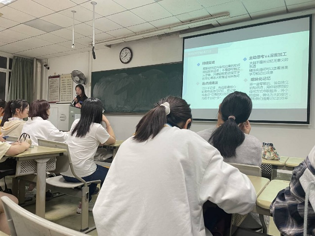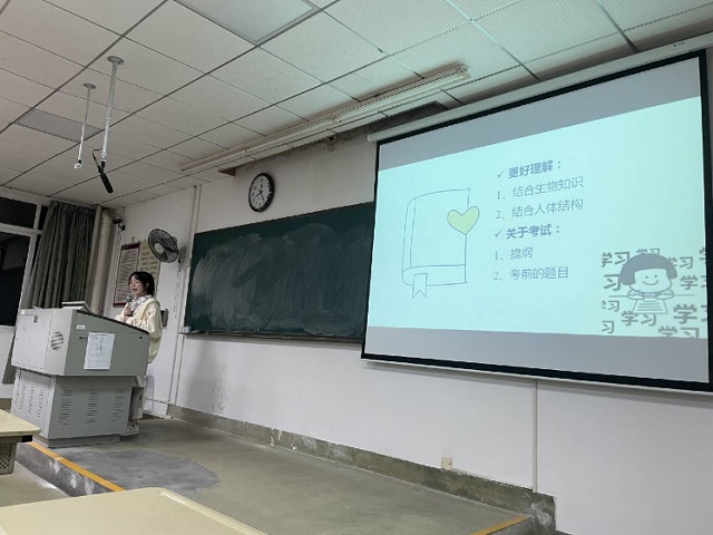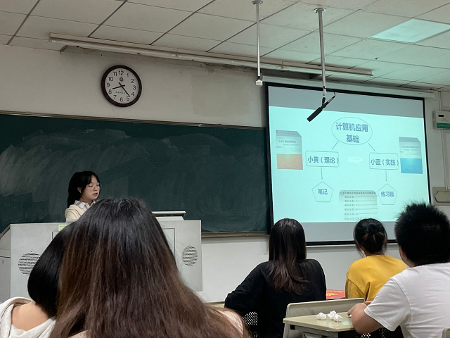 活动伊始,辅导员谢小芬对同学们近一个月来的表现进行了深刻总结,并为下一阶段的学习指明方向。本次活动,辅导员谢小芬主要围绕疫情防控与反诈骗知识展开论述,并针对大学生日常情感问题与未来就业发展方向进行了指导。随后,我院2020级辅导员王丽君带领四位优秀学姐来到晚点名现场为2021级同学们介绍学习经验。周雁琳学姐为我们介绍了高效记忆方法,阮静婧学姐针对不同课程教给同学们不同的学习方法,林雨婷学姐和缪晨学姐向同学们推荐了实用教材与课程APP,同学们对此反响热烈。