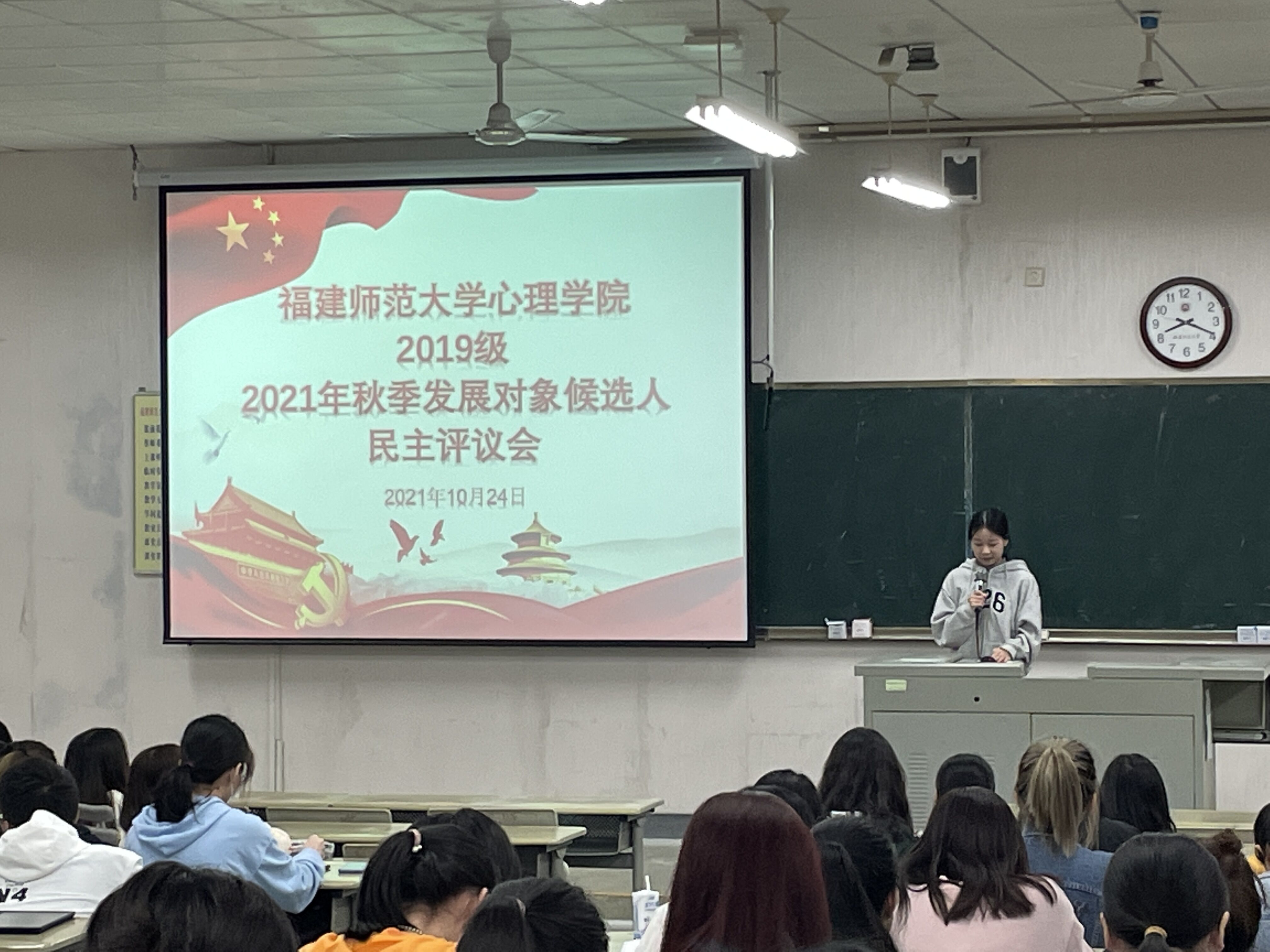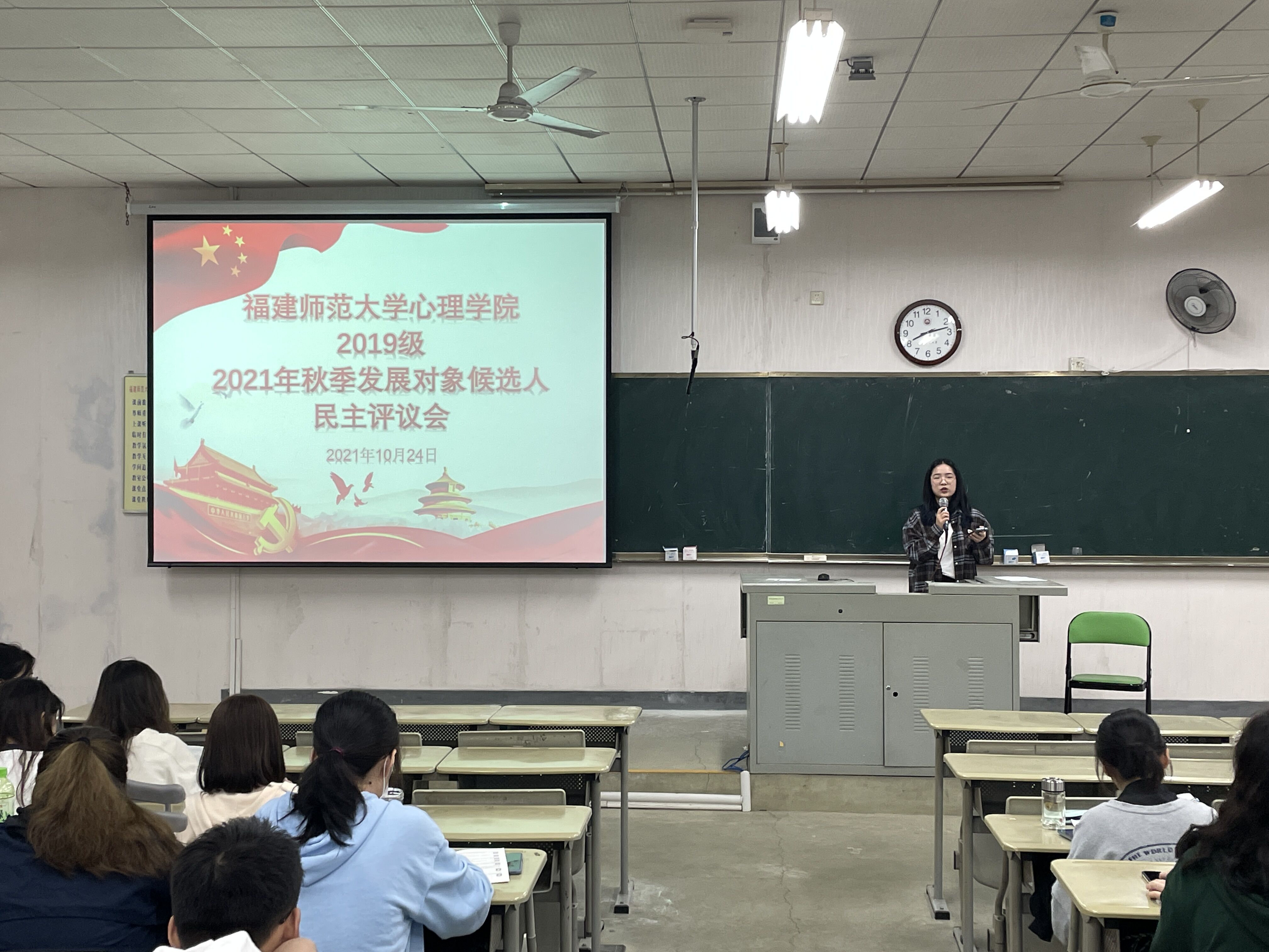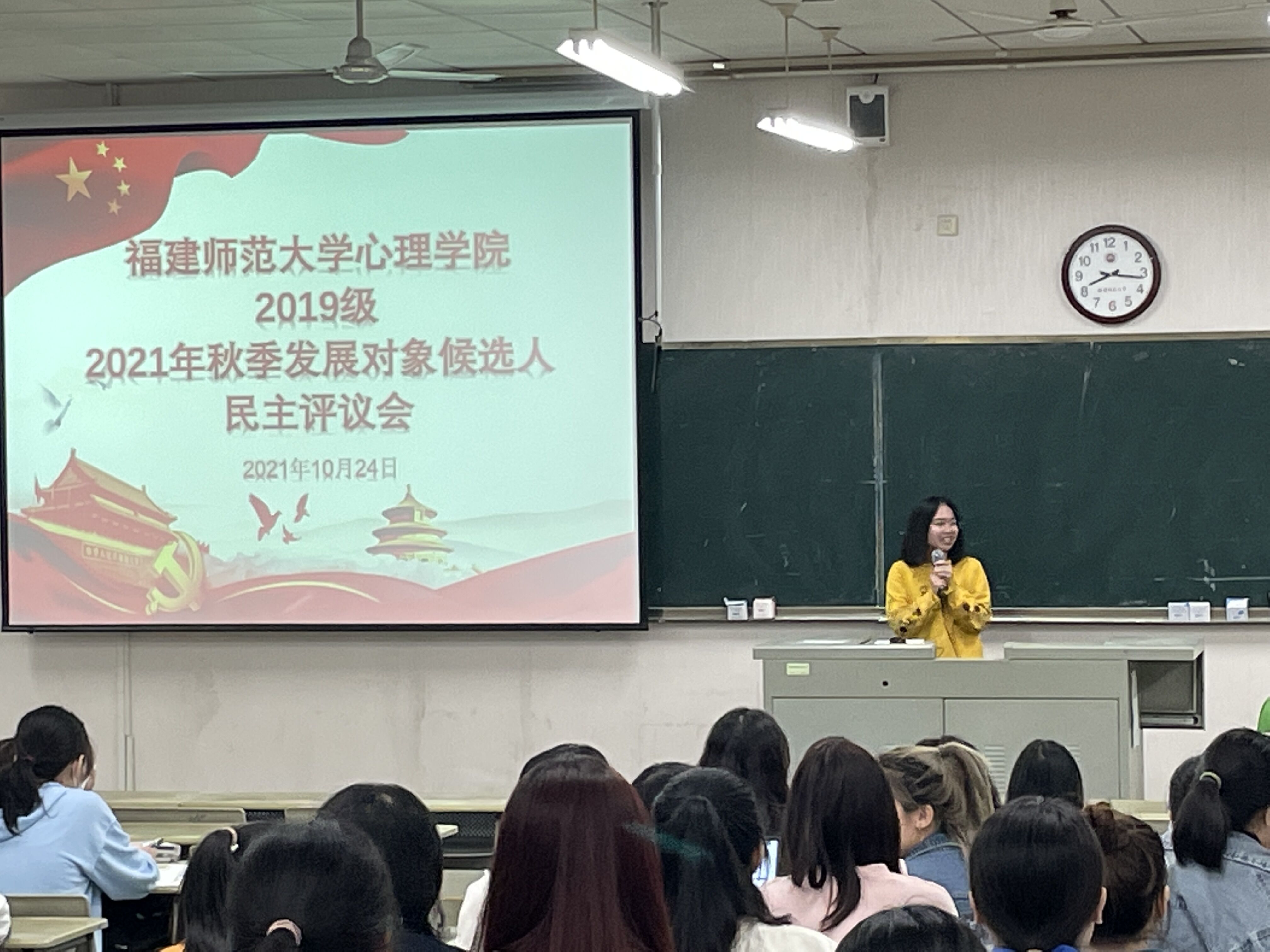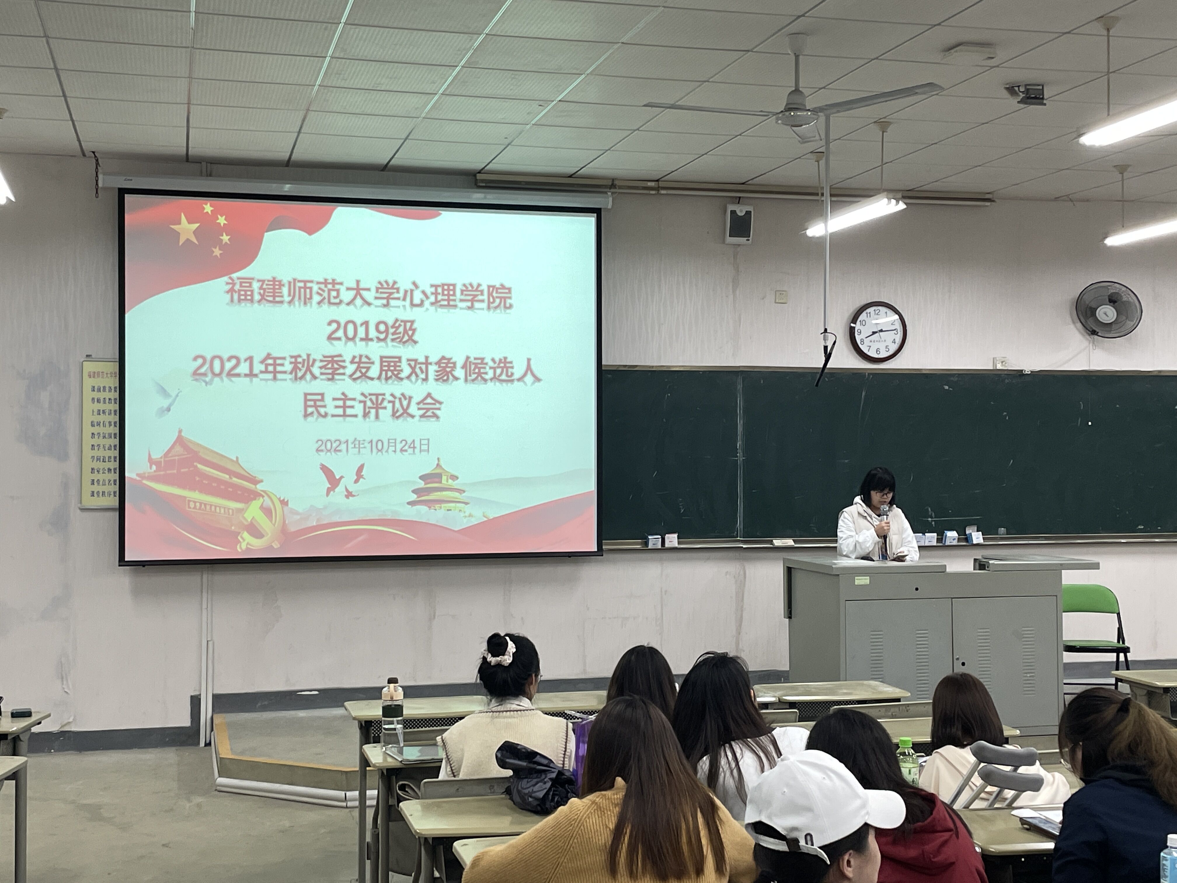 2021年10月24日,我院本科第一党支部于知明楼1-107教室召开了2021年秋季发展对象民主评议会。本次评议会由谢小芬辅导员主持,2019级全体同学到场。