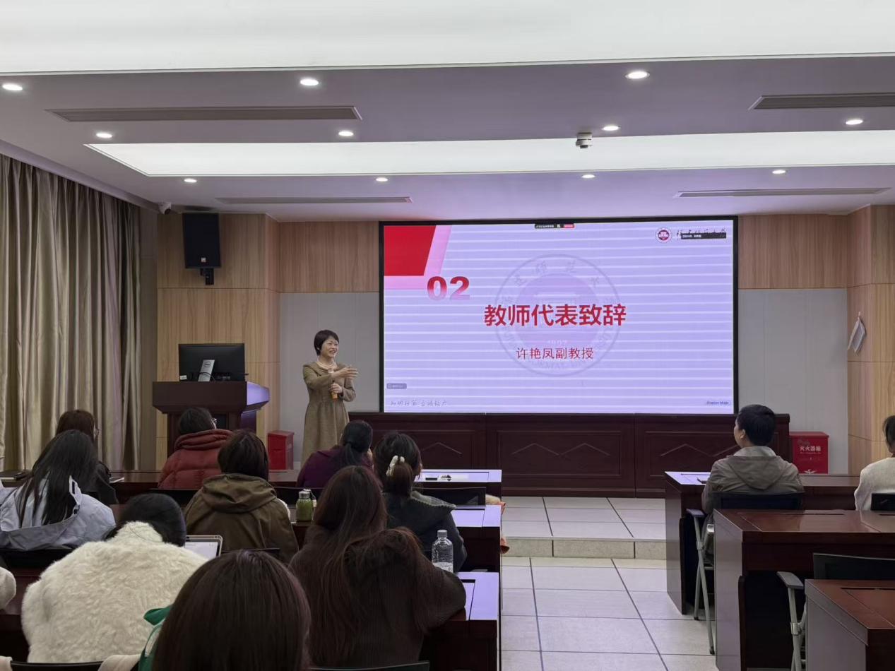 随后,许艳凤副教授作交流发言。她首先对实习合作单位对我校实习工作的高度重视、学院领导对心理健康教育专业实习工作的大力支持表示肯定。同时,结合往年实习情况,许艳凤副教授着重强调了实习中的注意事项,鼓励同学们精心准备公开课,以良好的专业状态完成各项实习任务,交出满意答卷。