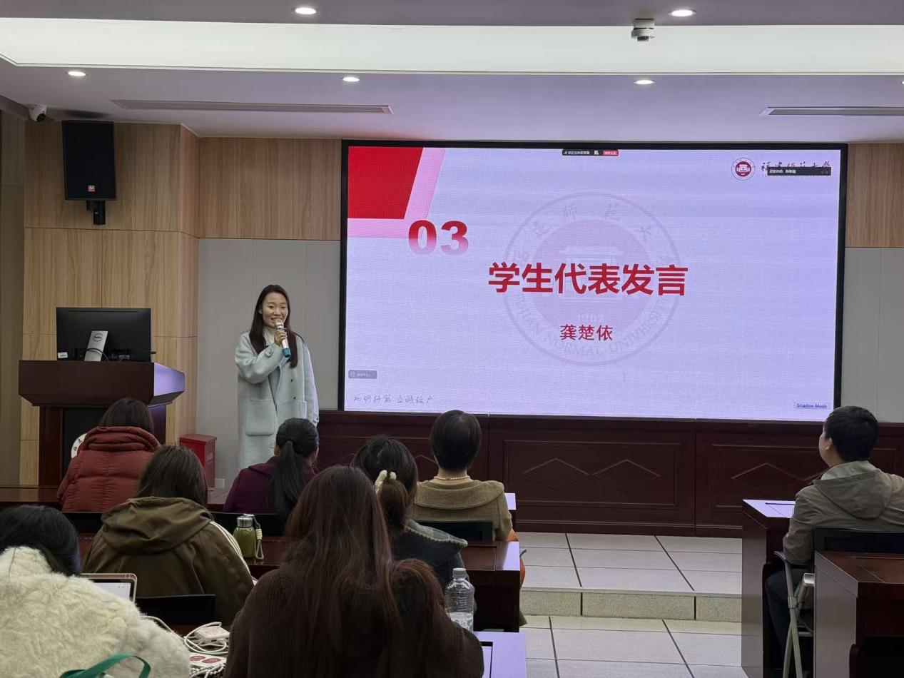学生代表龚楚依同学在发言中表示,经过在校期间的系统学习,同学们已夯实专业基础、锤炼专业技能,即将以心理健康教育教师的身份走进校园,倍感责任与使命。她代表2024级实习生承诺,实习期间将认真对待每一堂课、每一次心理谈心辅导,把课堂所学专业知识切实运用到教育教学实践中,力争圆满完成实习任务。