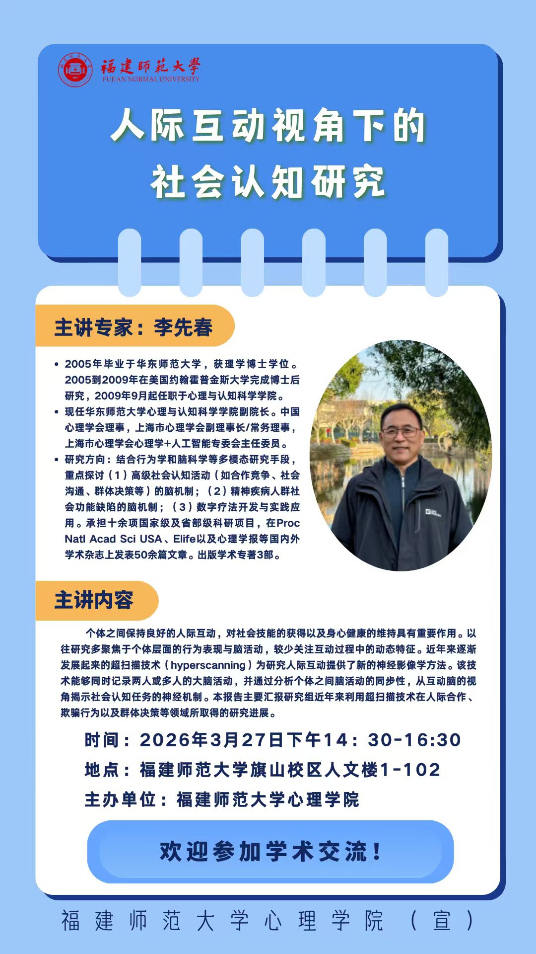学术讲座【人际互动视角下的社会认知研究】