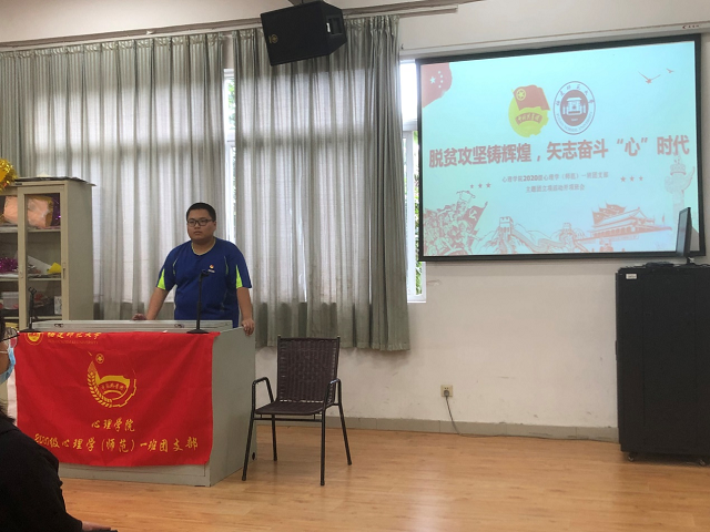 为贯彻落实习近平总书记关于脱贫攻坚的重要讲话精神,激发支部成员们的爱国热情。2021年10月30日下午4点,我院2020级心理学(师范)一班团支部在人文楼4-301团辅室开展了以“脱贫攻坚铸辉煌,矢志奋斗‘心’时代”为主题的团立项活动。此次活动由心理学(师范)一班团支部组织,支部全体成员参与。