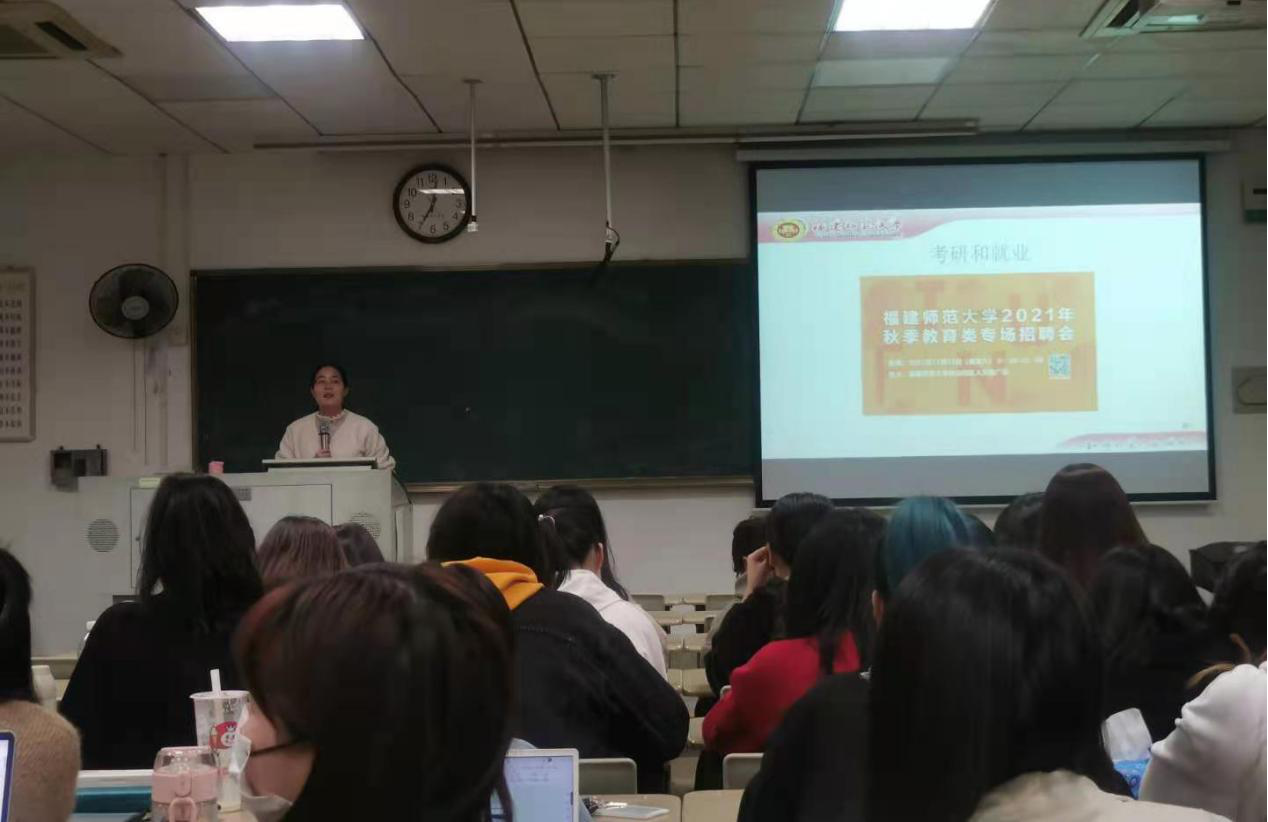 首先,谢小芬老师以11月13日校内举办的秋季教育类专场招聘会为例,向同学们介绍了目前心理学专业就业的方向和趋势,带领同学们了解了心理学专业不同方向的就业形势。接着,谢小芬老师以往届学生的就业事例,向同学们介绍了不同方向和不同领域的招聘条件,呼吁同学们认真做好未来规划,明确就业目标,全方位锻炼能力。同时,谢小芬老师鼓励学习能力较强、有志继续深入学习心理学的同学着手准备考研,明确报考院校,提高自己的专业能力,以期实现更高质量的就业。