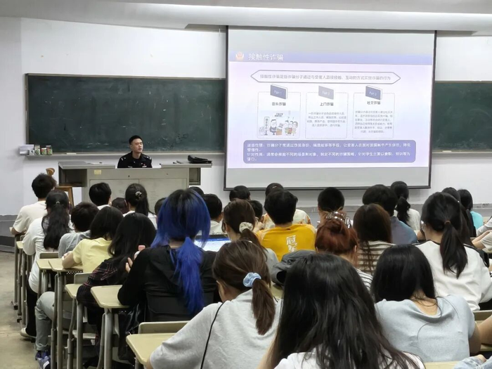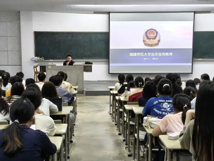 为切实提升我院学生防范电信网络诈骗的意识与能力,守护学生财产安全与校园稳定,我院于4月10日晚在知明2-201 开展反诈主题宣讲会。福州市公安局长安派出所黄焰林警官出席本次宣讲会,我院全体学生参加活动,宣讲会由辅导员李雨潼主持。