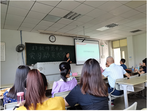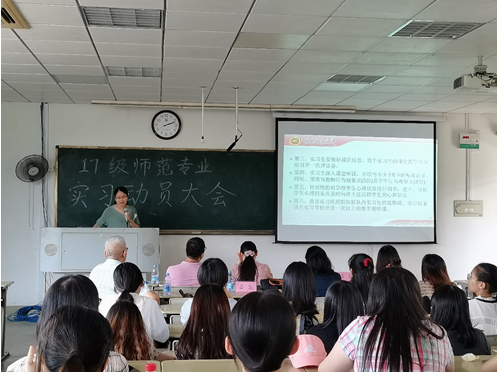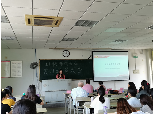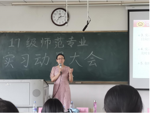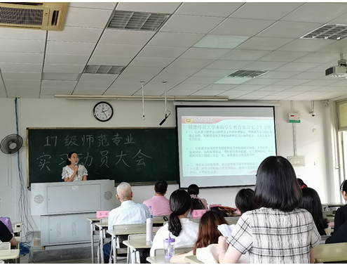 首先,副院长孟迎芳教授向全体同学介绍了本次实习的意义,并提出了几点嘱托。她强调师范班的学生需要做好从学生转换成实习教师的准备,希望同学们在往后的实习教学中能够端正实习态度,承担起作为老师的责任;同学们要勤奋好学,学习在实际的学校环境中去进行实际教学,同时学会如何应对各种新情况、新考验。此外,孟迎芳老师还着重强调了安全问题,殷殷嘱托中蕴含了对同学们的无限期望。